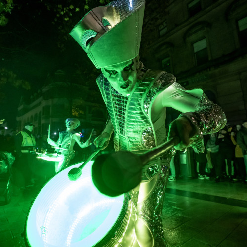 Tijdens de adembenemende City of Drones-show kleuren 100 drones vanavond het luchtruim boven St Columb’s Park als afsluiting van de kleurrijke Halloween Carnaval Parade. Dit jaarlijks terugkerend hoogtepunt staat garant voor een indrukwekkend optocht met honderden gekostumeerde personages, vuurartiesten, luchtacrobaten, trommelaars en nog veel meer, die allemaal dansend hun weg vinden naar het vuurwerk dat Derry Halloween afsluit. Paradegangers kunnen de droneshow bekijken vanaf Queen’s Quay, vlak voordat het vuurwerk boven de Foyle rivier tot leven komt.